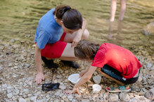 Während einer Exkursion direkt ans Gewässer wird den Schülerinnen und Schülern auf spielerische und experimentelle Weise aufgezeigt, warum natürliche Flusslandschaften für Mensch und Tier so wichtig sind. Die Kinder lernen den Biber als Schlüsselart für diesen Lebensraum kennen. Mit Kescher und Becherlupe werden die kleinen Lebewesen im Wasser, sogenanntes Makrozoobenthos, als Indikatoren von einem gesunden Gewässer erklärt.