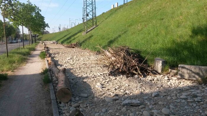 Zugleich wird der Teil des bestehenden Parkplatzes umgewandelt (Bild). Hier wird offenbar eine ökologische Ersatzmassnahmen für den Vierspurausbau der Deutschen Bahn auf dem benachbarten ehemaligen DB-Rangierareal vorbereitet. Der Camion-Parkplatz über einem Fliessgewässer ist somit vom Tisch.